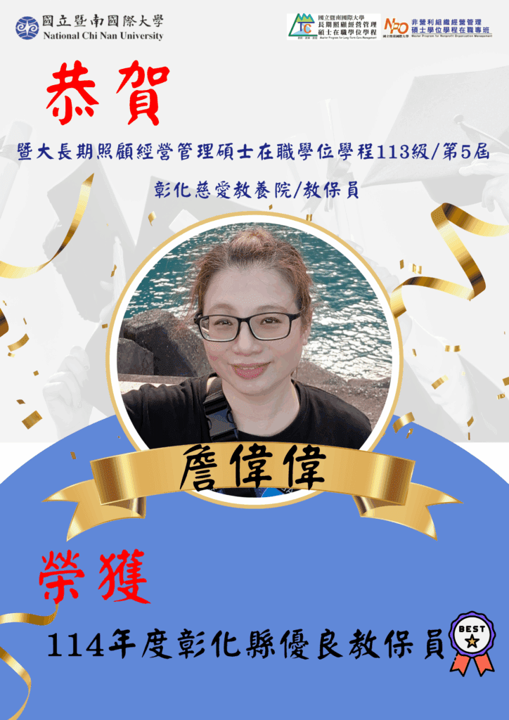 恭喜LTC學程113級詹偉偉同學 榮獲 『 114年度彰化縣優良教保員』🎊 2025 年 10 月 1 日 2025 年 10 月 3 日 學生獲獎 行政公告 活動公告 教師獲獎 學生獲獎 恭賀! LTC學程113級詹偉偉同學 2025-10-01 恭喜LTC學程113級詹偉偉同學榮獲 『114年度彰化縣優良教保員』🎊 Prev上一則恭喜LTC學程111級陳家聖同學 榮獲 『 2025傳善研究影響力-佳作(研究獎勵金10萬)』🎊 下一則恭喜NPO學程105級陳秋坤同學 榮獲 『 114年農業部第四屆農村領航獎』🎊Next